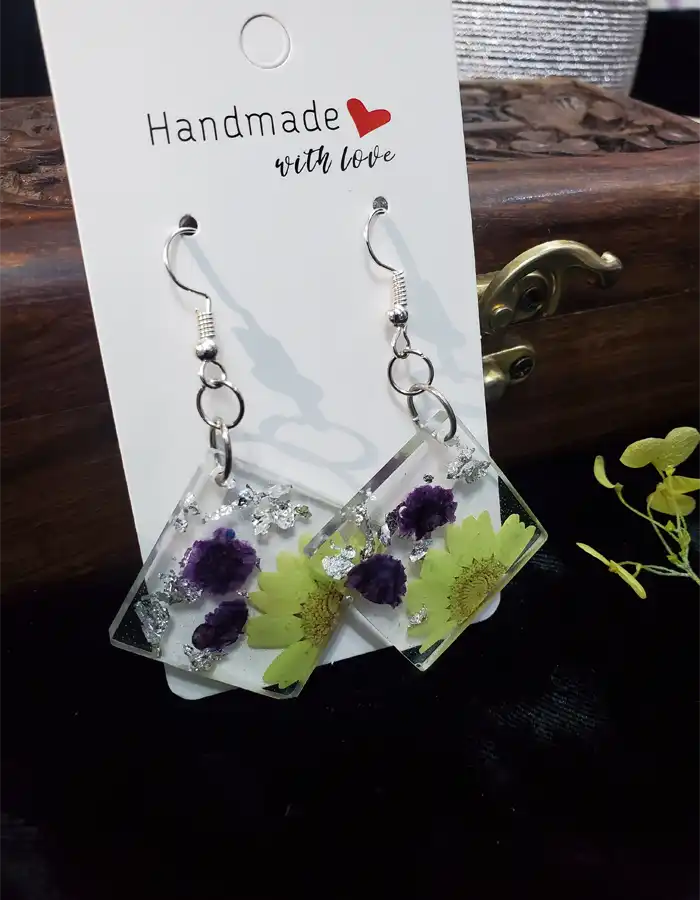 Floral Resin Earrings, Artisan Jewelry, Nature-Inspired Accessories