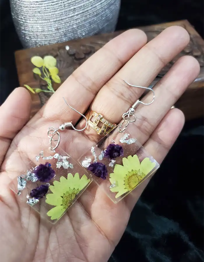 Introducing the exquisite Hand Crafted Resin Earrings – Botani Twins, a stunning pair of earrings that beautifully encapsulates the charm of nature.